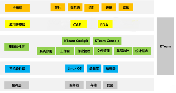 KTeam是基爾科技自主研發(fā)的高性能協同設計仿真軟件平臺,可實現設計與計算集群資源統一部署、使用、瀏覽、管理、監(jiān)控和統計等,可大幅提高仿真效率,簡化平臺管理。KTeam由應用工作臺、作業(yè)調度模塊、文件管理模塊、集群監(jiān)控模塊、資源統計模塊組成。選用KTeam及其相關服務,可以幫助用戶部署操作系統,安裝和測試集群軟件以及應用環(huán)境,基于高性能集群硬件設備,提供傳統的設計環(huán)境和高速的仿真體驗。
